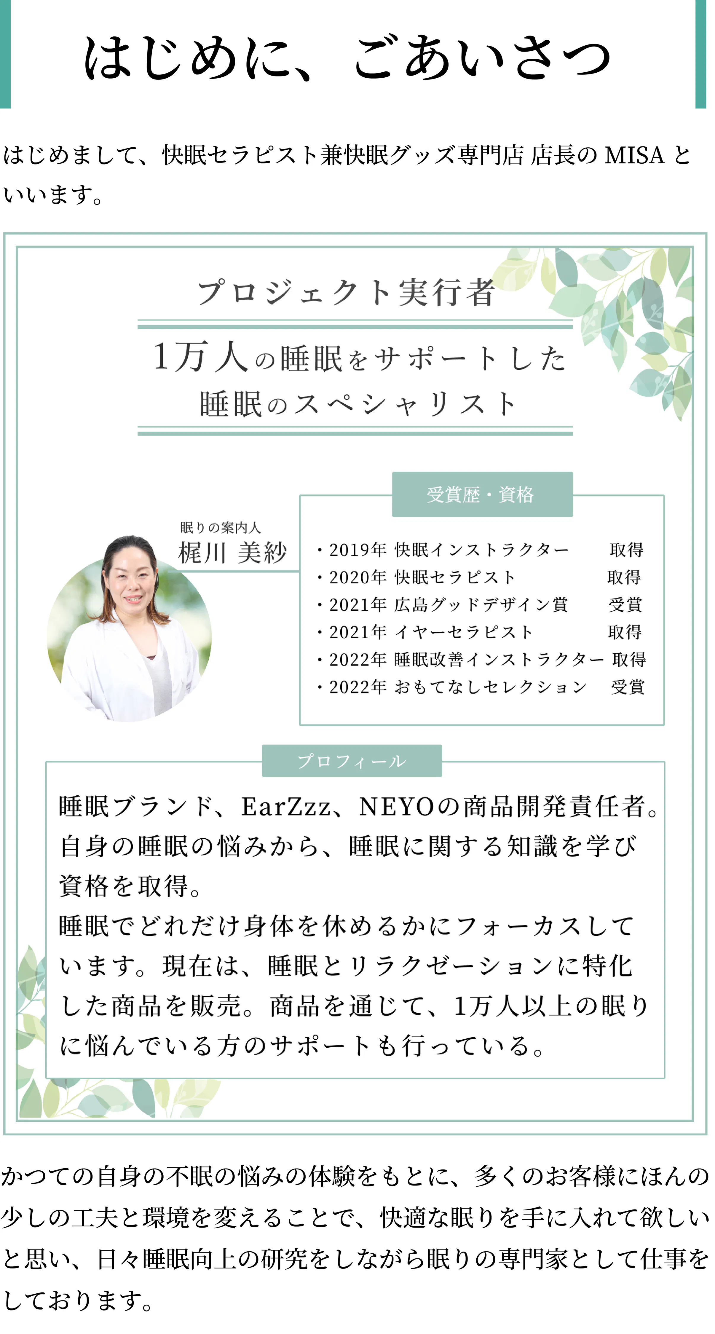 眠りの案内人の活動、CAMPFIRE手数料、睡眠商品をより多くの人に届けるための予算として大切に使わせていただきます。