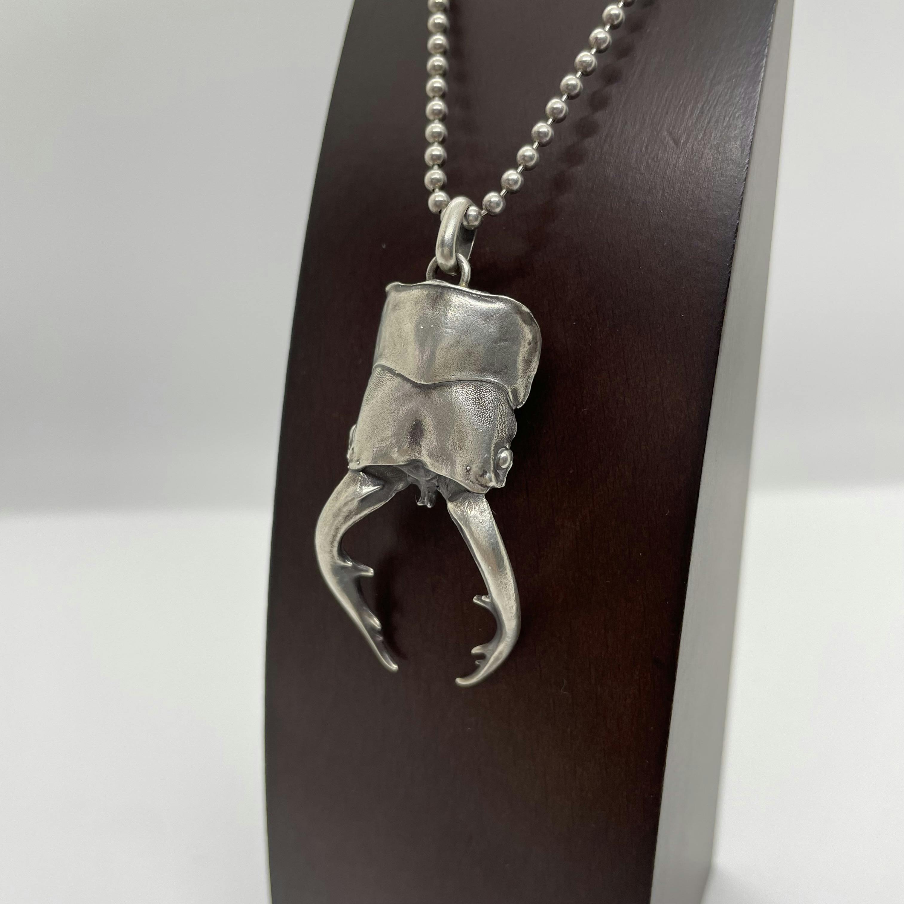 商品はシルバー925を使用したネックレスがメインになります。カブトムシやクワガタムシ等の本物の標本を型取りして、アクセサリーに加工しています。