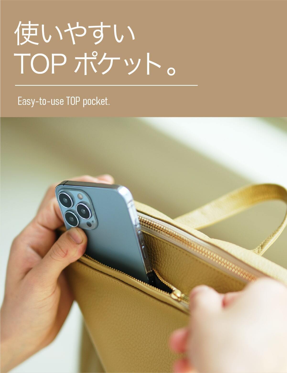 【軽量500g】縦ポケット×天面隠し×背面ファスナーの本革トートを公開しました。