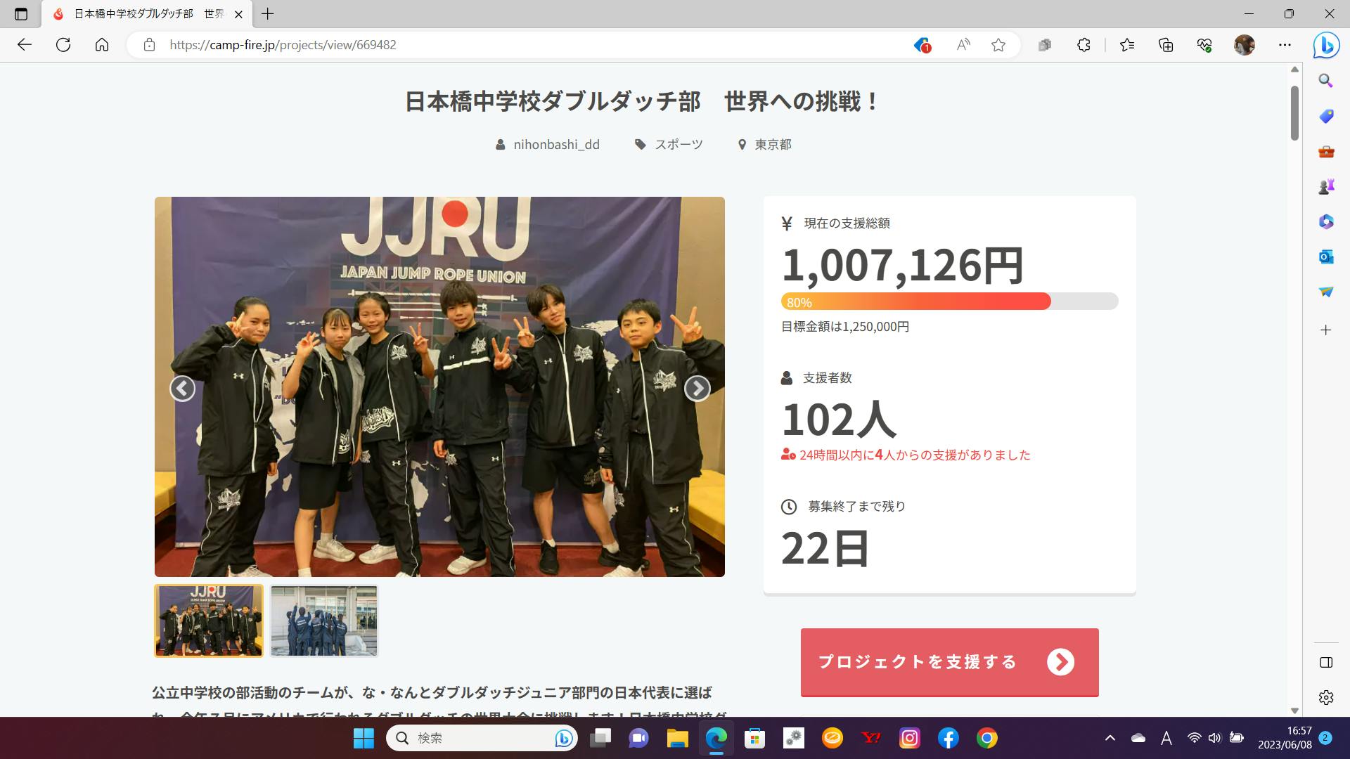 目標金額は1,250,000円