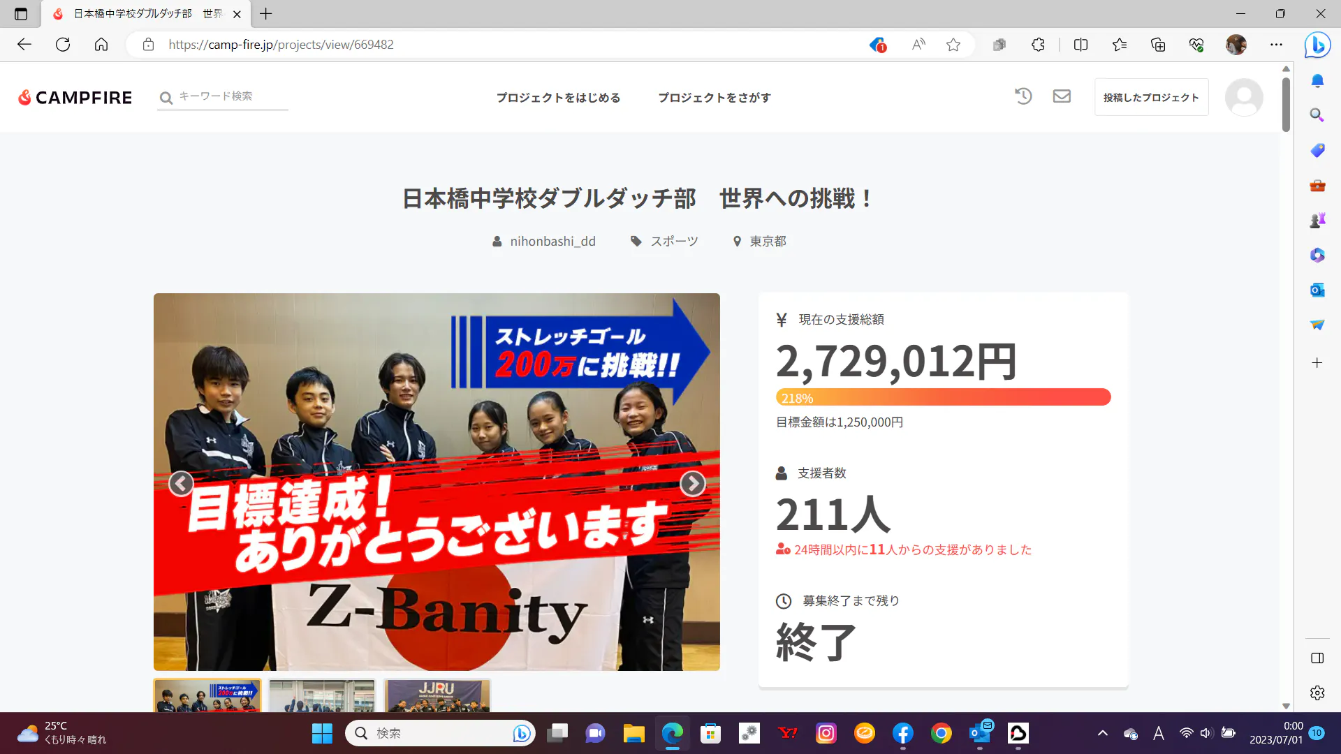 最終的に200名以上の皆様から応援、ご支援をいただき、