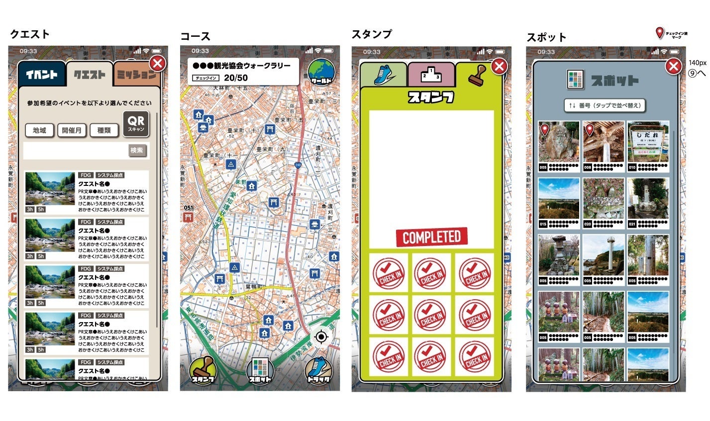 登録されたスポットを利用して、オリジナルのフォトラリーや、ロゲイニングの「クエスト」を作成することができます(有料コンテンツ)。観光コンテンツや、スポーツ・文化教室のツールとして活用して頂けます。