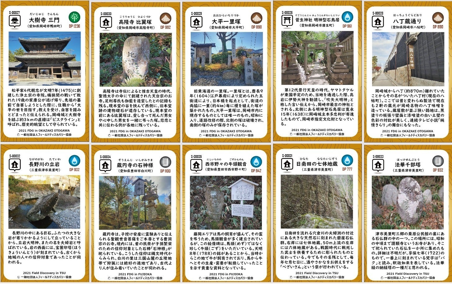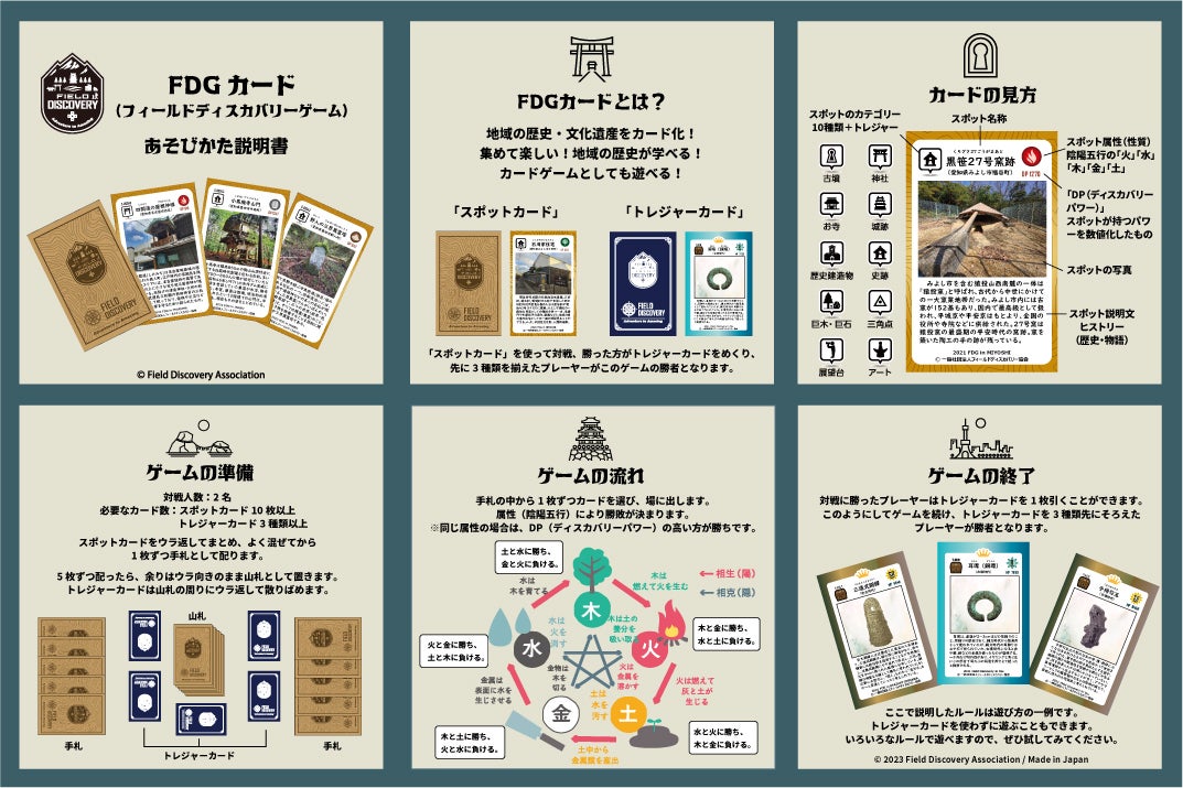 オリジナルトレーディングカード「FDGカード」は、各地域の史跡をカード化した「スポットカード」と「トレジャーカード」の2種類が存在します。イベント限定アイテムで、カードゲームとしても遊べます。