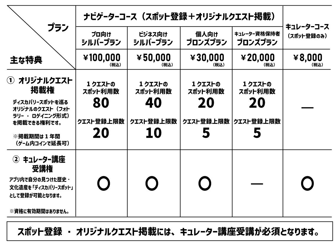 見つけたディスカバリースポットを、アプリに登録することができるキュレーターを養成する講座の受講権(PDFテキストで自宅学習 ※約2時間程度)です。受講後、IDとパスワードが発行され、キューレーター専用画面より、スポット登録申請が可能となります。