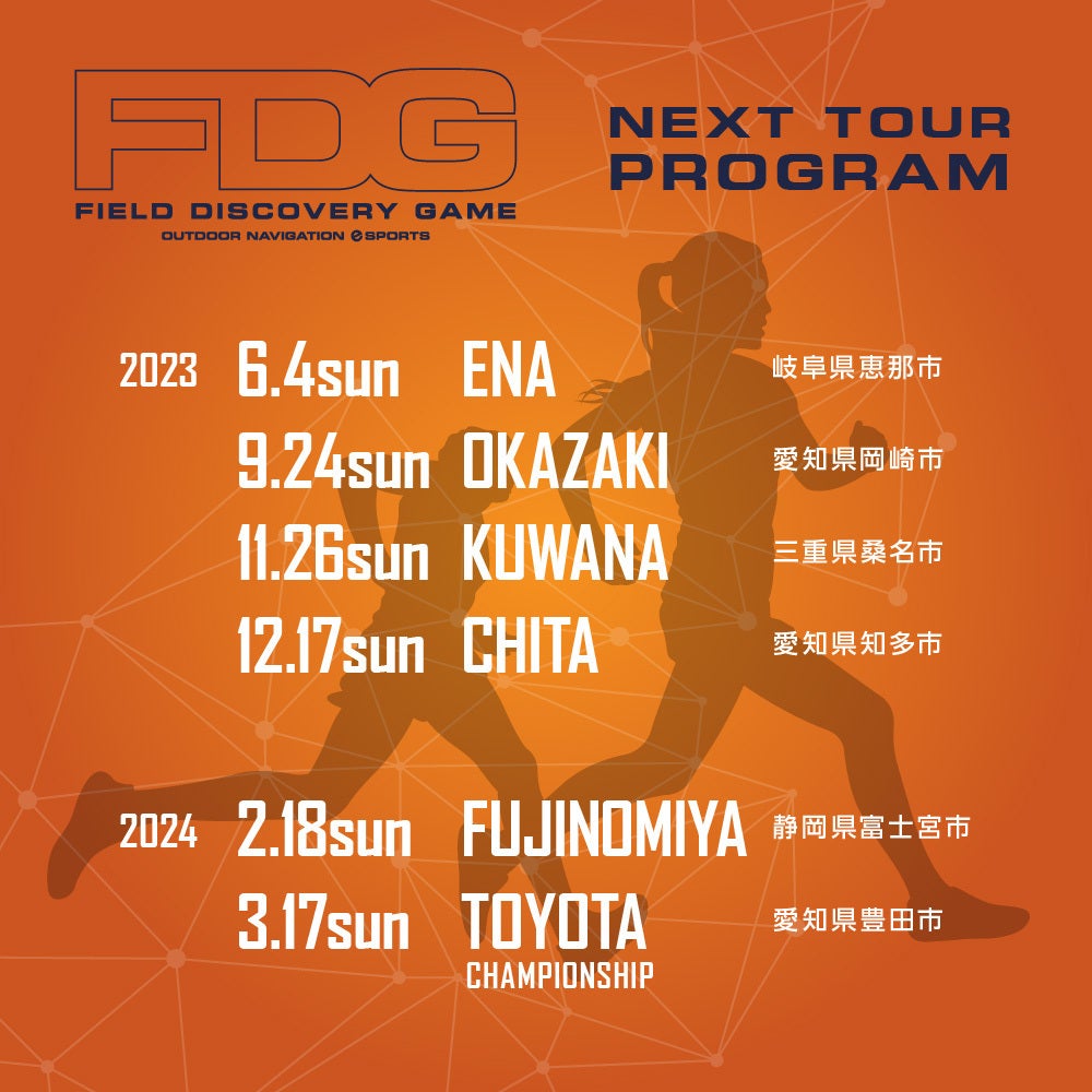 当協会は、2021年より、「フィールドディスカバリー®」を普及するため、ロゲイニング形式のスポーツイベント「FDG(フィールドディスカバリーゲーム)」を、東海3県(愛知・三重・静岡)で15大会開催してきました。ロゲイニングとは、決められたスポットを巡り、制限時間内で得られた得点を競うアウトドアスポーツで、健康づくりのみならず、地域おこしやチームビルディングの機会としても近年注目を集めています。