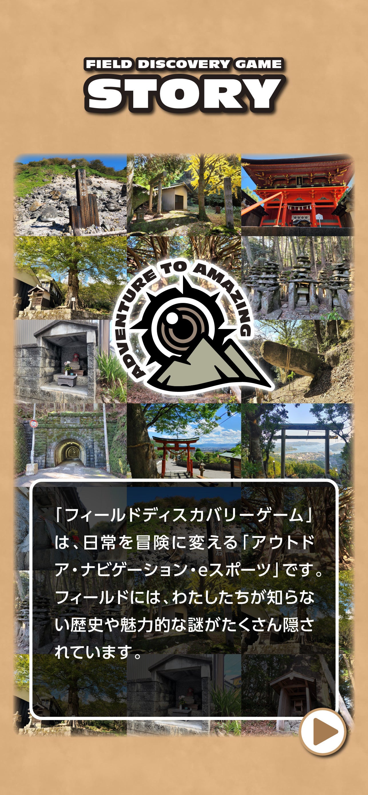 スポットを巡り「発見」を楽しむアウトドア・eスポーツ「フィールドディスカバリー®」専用ゲームアプリを開発、それにより、地域に眠る知られざる歴史・文化遺産を再発見し、日本の素晴らしい伝統文化・歴史を次世代に継承していきます。また親子や仲間との絆を深める生涯スポーツとして普及していきます。それにより、日本人としての誇りと自信を取り戻し、世界に誇れる活力ある日本を築いてまいりましょう!