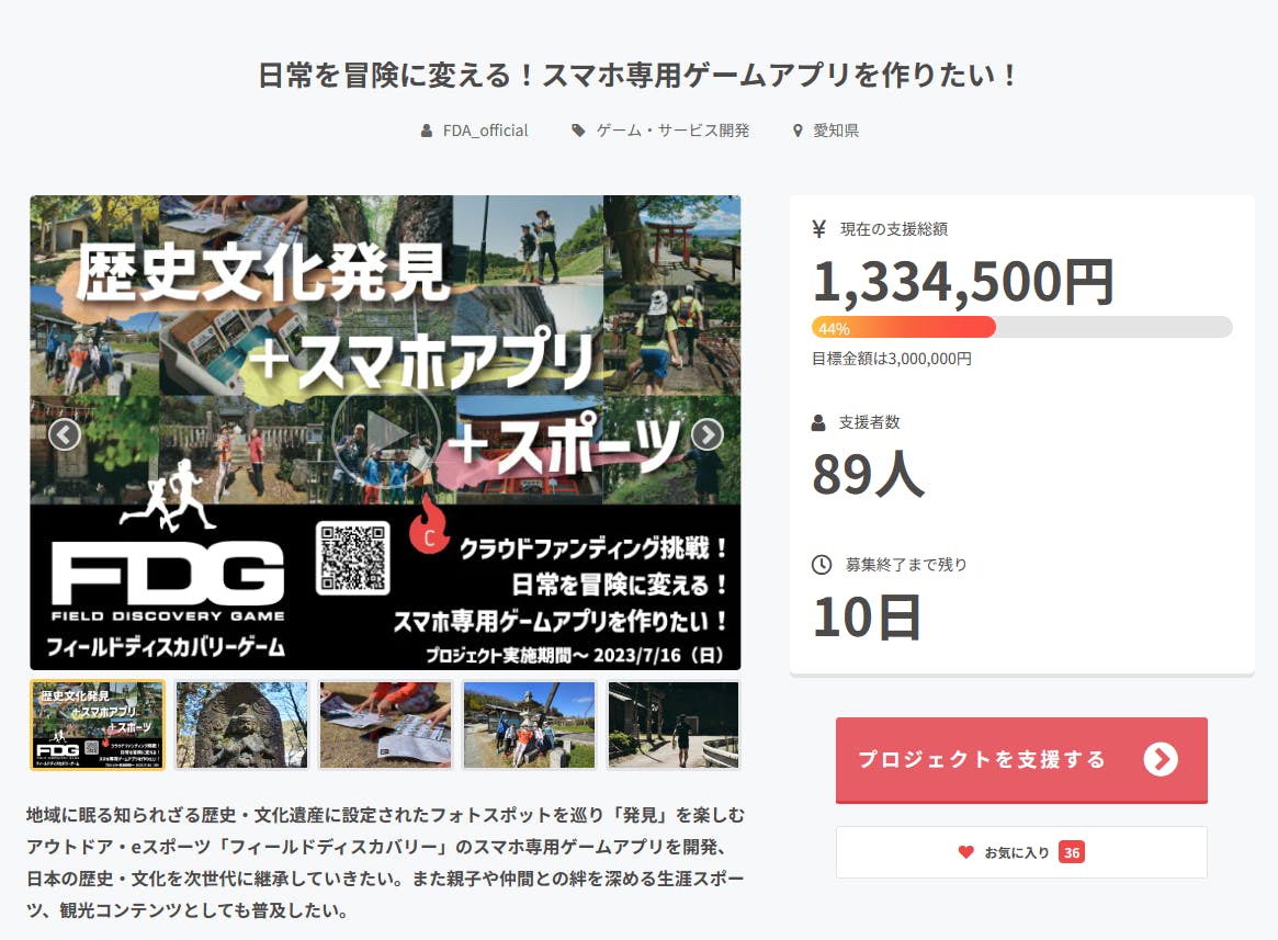 このアプリが完成すれば、ウォーキングやジョギング、サイクリングといった有酸素運動を楽しみながら、地域の歴史や伝承を学ぶという、「スポーツ」×「アカデミック」が融合した新しいアクティビティ「フィールドディスカバリー®」が世の中に普及することができます。