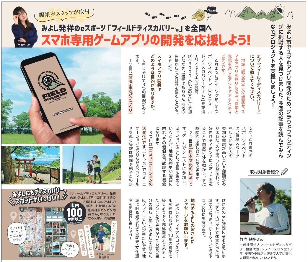 たくさんのご支援・応援、誠にありがとうございます!日常を冒険に変える!スマホ専用ゲームアプリを作りたい!クラウドファンディング終了まであと10日となりました。現在、1,334,500円、89名の皆様からご支援頂いております。本当に、ありがとうございます!ご支援はこちらからhttps://camp-fire.jp/projects/view/669554アプリ開発の方も順調に進んでおり、9月頭のリリース日に向かって鋭意進行しております。このアプリが完成すれば、ウォーキングやジョギング、サイクリングといった有酸素運動を楽しみながら、地域の歴史や伝承を学ぶという、「スポーツ」×「アカデミック」が融合した新しいアクティビティ「フィールドディスカバリー®」が世の中に普及することができます。ただ、現状の開発資金の方は、まだまだかなり厳しい状況です。各種リターンをご用意しています。皆様のお力添えを、何卒、よろしくお願いします<(_ _)>マップ上のスポットにチェックイン! カードとコイン・経験値をゲット! ブック(カードホルダーに)収納されます。 冒険の記録で実績が確認できます。各種ランキングで全国のユーザーと競おう! 様々なミッション、クエストに挑戦しよう!レアな歴史・文化遺産カードを集めよう! キュレーターになればスポット登録が可能!ご支援はこちらからhttps://camp-fire.jp/projects/view/669554