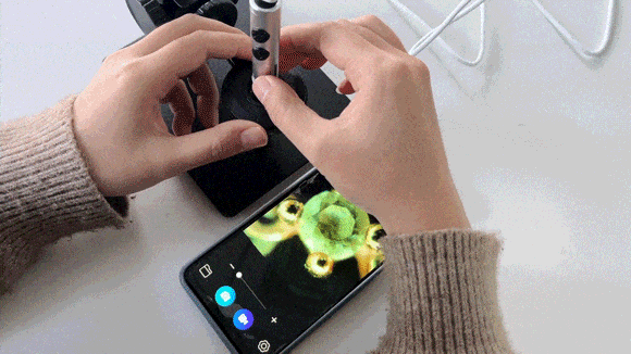 最大3台スマートフォンと同時に接続可能。顕微鏡で見ている世界が接続したデバイスの画面に映し出され、複数人で観察をすることができます。