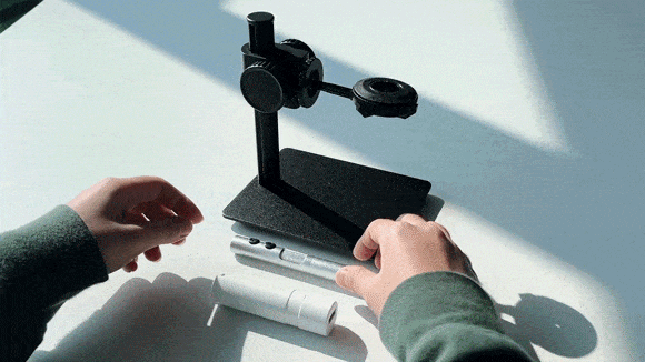 単体で手持ち式顕微鏡として使用可能。カバンやポケットにも簡単に収納でき、屋外や旅先での利用にも便利です。