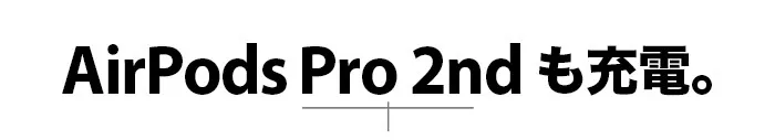 Maco Go 2は、AirPods Pro(第2世代)にも対応。Apple Watchと同じようにMaco Go 2を使えば、AirPods Pro(第2世代)を充電することができます。