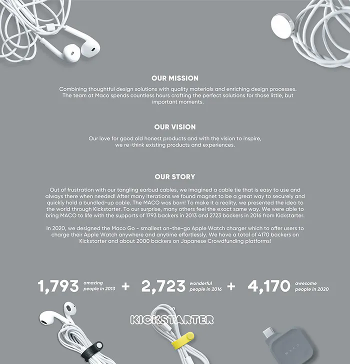 2020年7月にkickstarterとindiegogoでクラウドファンディングプロジェクトを実施した、Apple WatchをUSB-Cから直接充電できる充電器が「Maco Go」です。9,000名を超える支援者を獲得しました。現在、類似の充電器が市場に溢れていますが、特別な理由でMaco Goはいまなお、多数のユーザーに愛用されています。