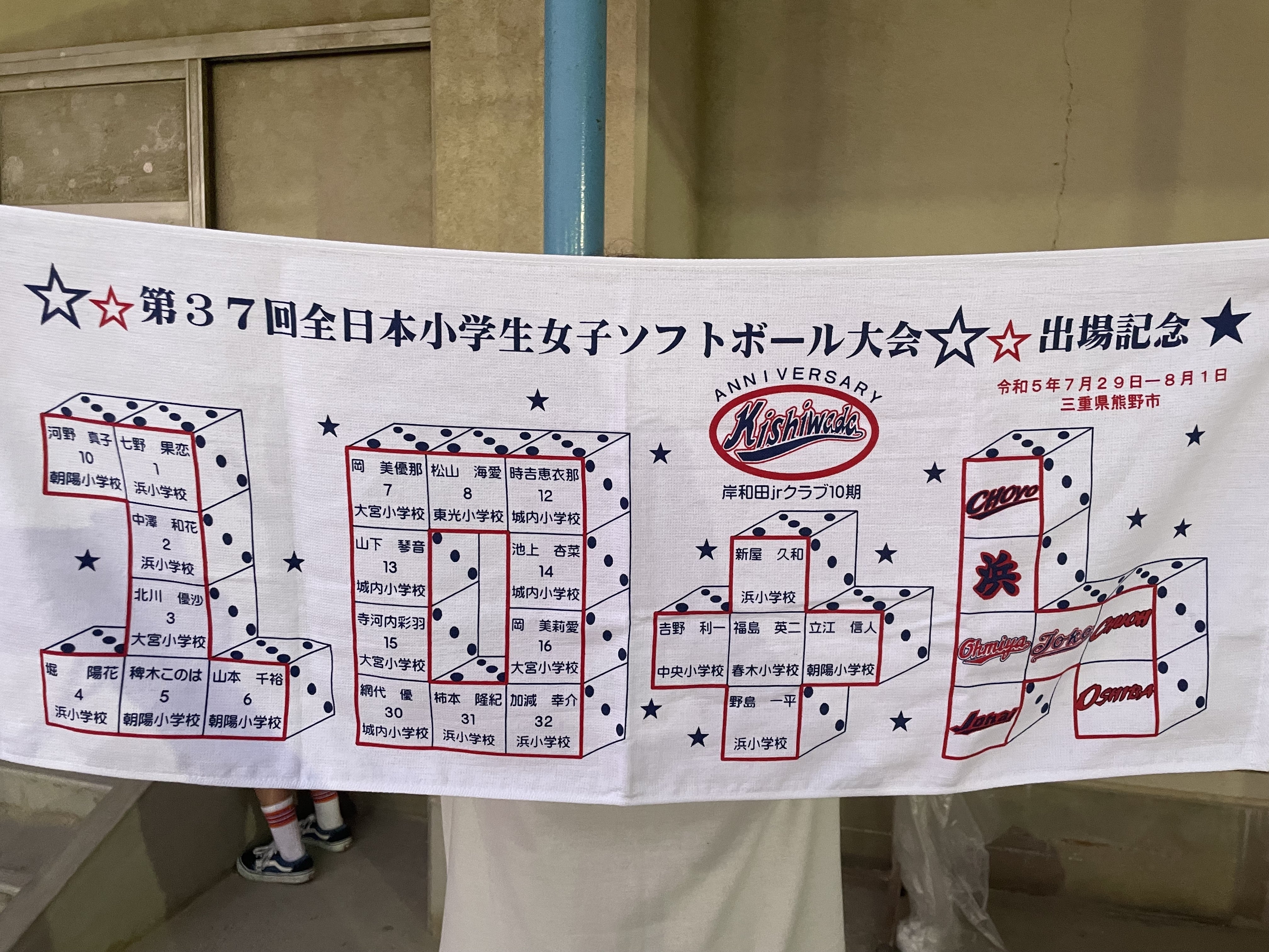 ☆10,000円→お礼のメッセージメール、ポストカード、所属選手全員の名入り岸和田jr全国大会出場記念ロゴタオル【地元名産泉州タオル】縦74cm横33cm
