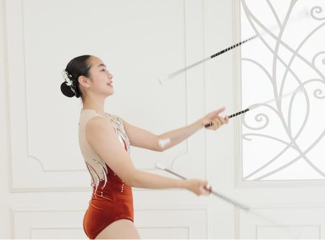 世界大会に選考された種目「スリーバトン」は小学4年生から始めました。スリーバトンとは3本のバトンを扱う競技です。