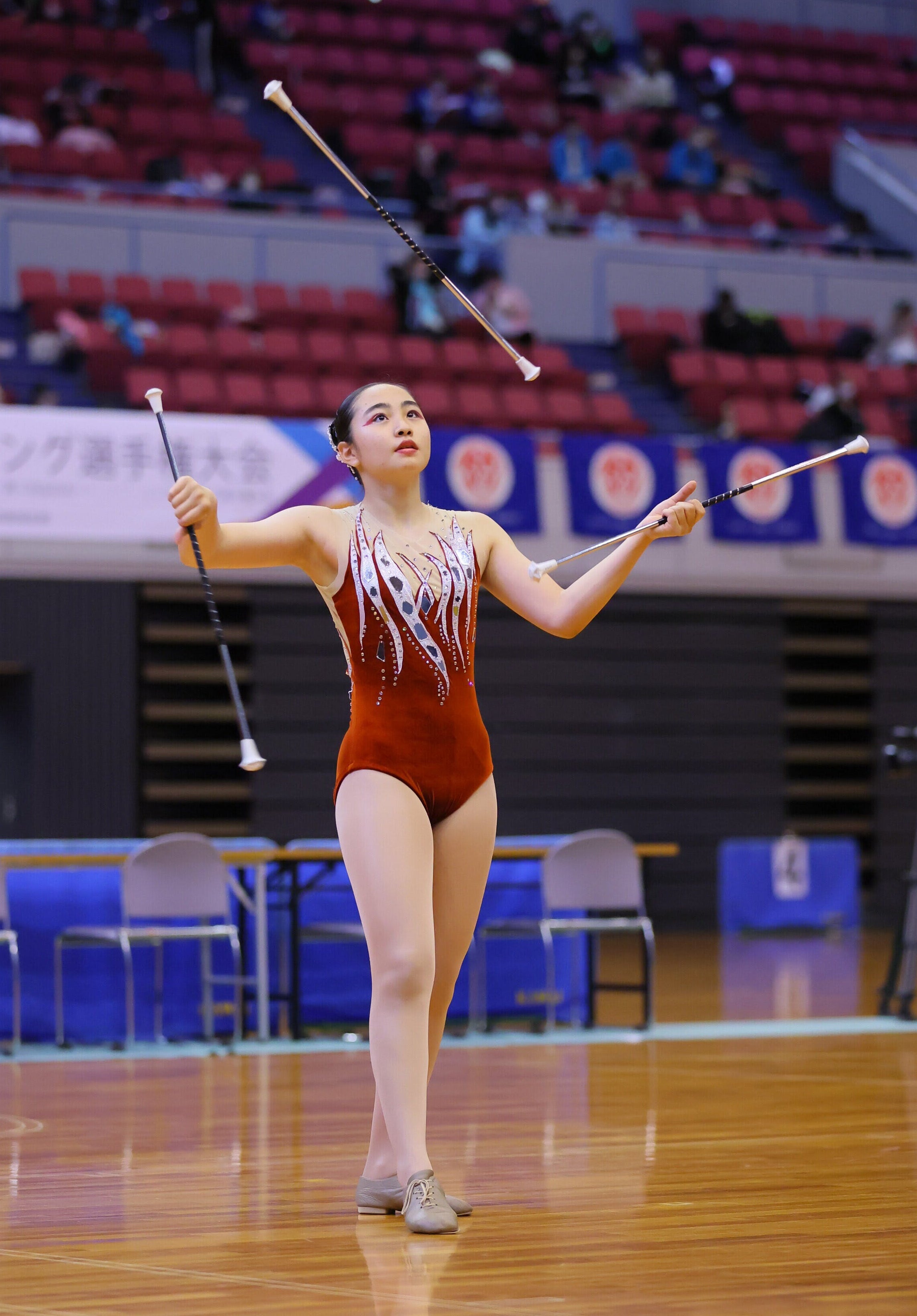 今年のIBTF世界バトントワーリング選手権大会の日本代表選考会の女子ジュニア部門決勝では確実に準決勝より良い演技を落ち着いて行い、なんと6人の日本代表の中で4番目に決まりました。