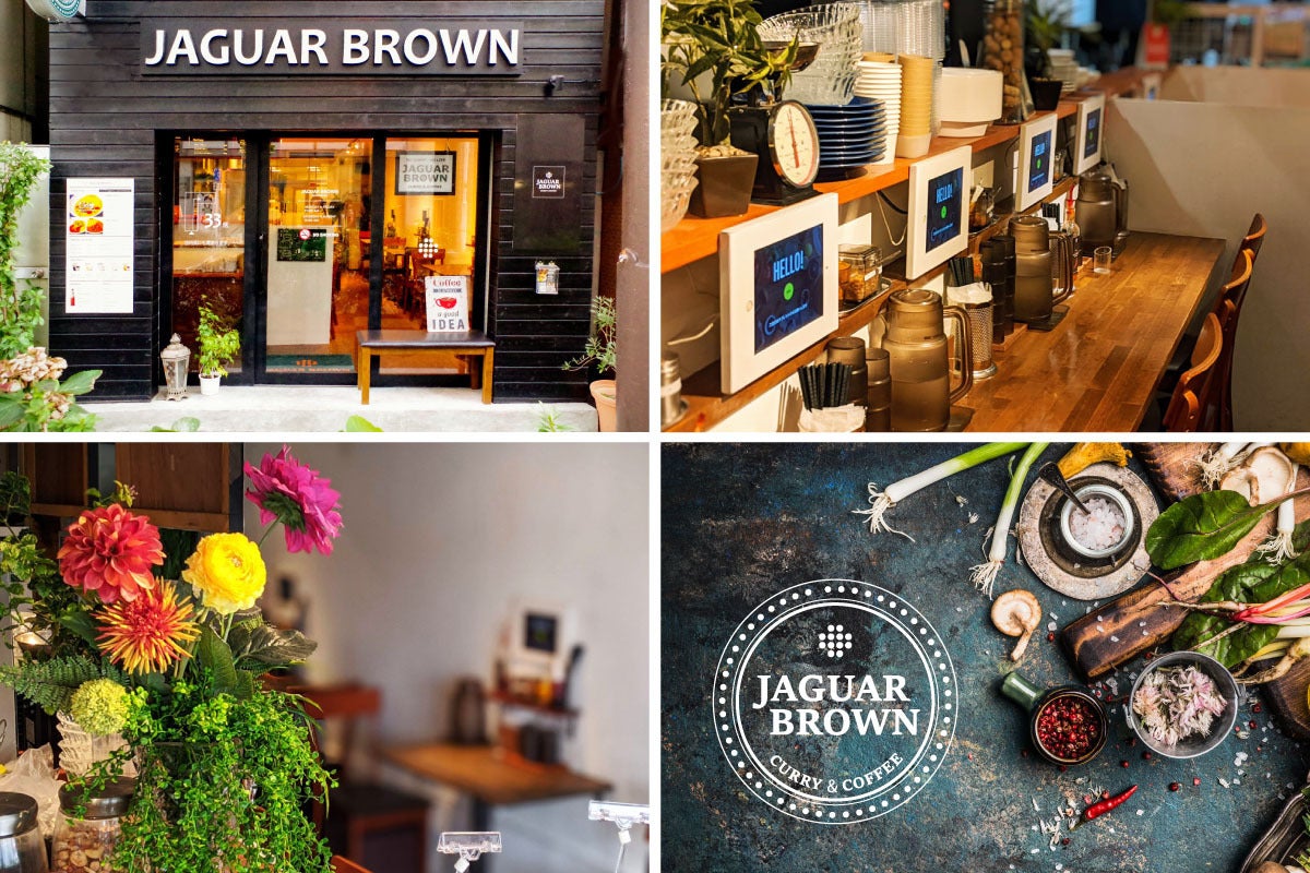 JAGUAR(ジャガー)は「速さ」を、BROWN(ブラウン)は「カレー」を、ロゴのドットはジャガーの斑点を象徴しています。日本式インド・ネパールカレーで、次世代型の「早い、安い、旨い」を実現できるように想いを込めて名付けました。