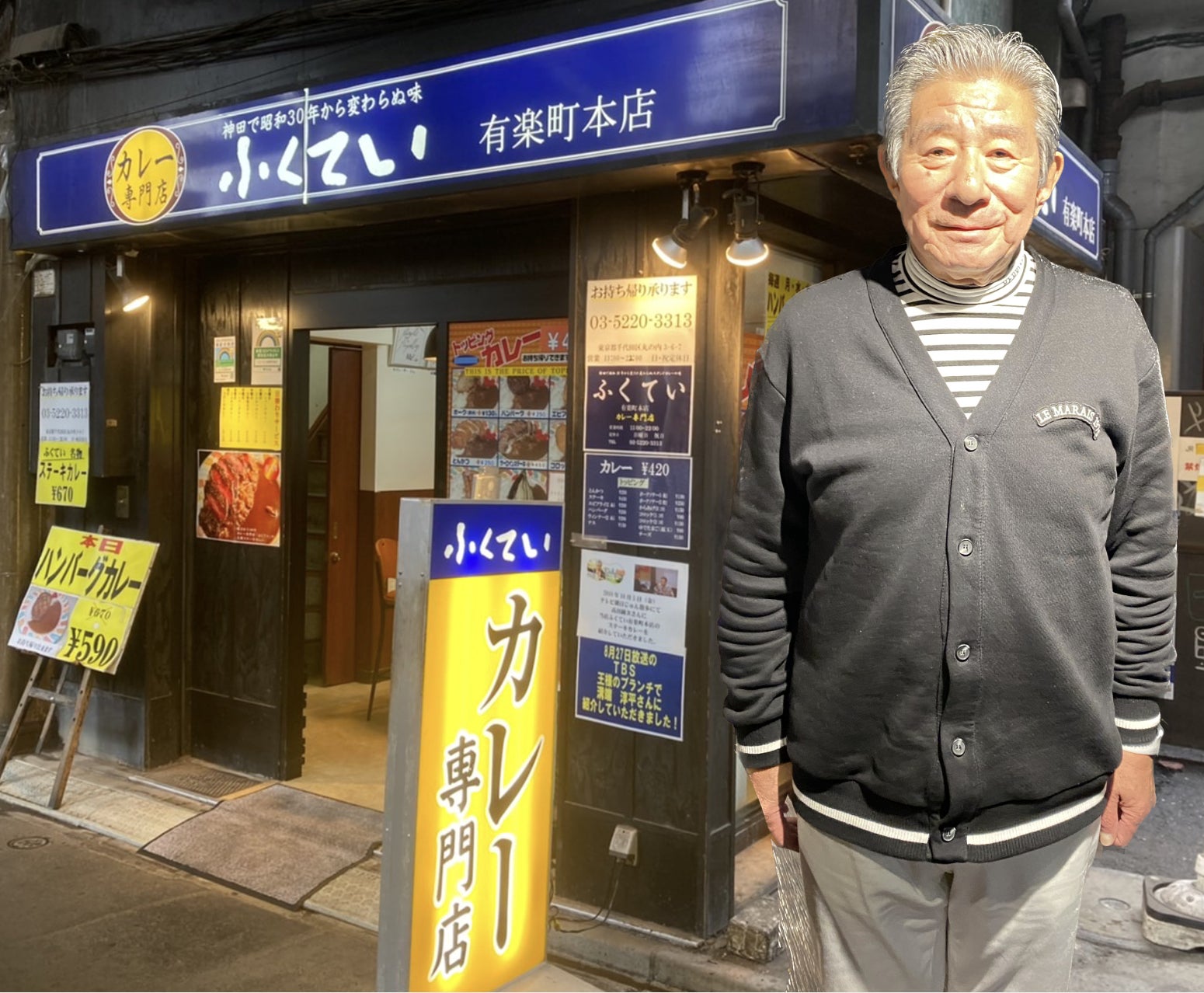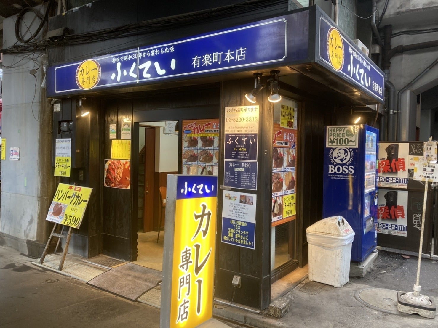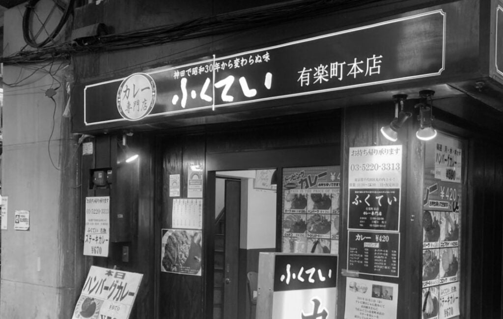 平成22年に神田駅の大規模修繕により、有楽町に移転しカレー専門店「ふくてい」として再出発しました。
