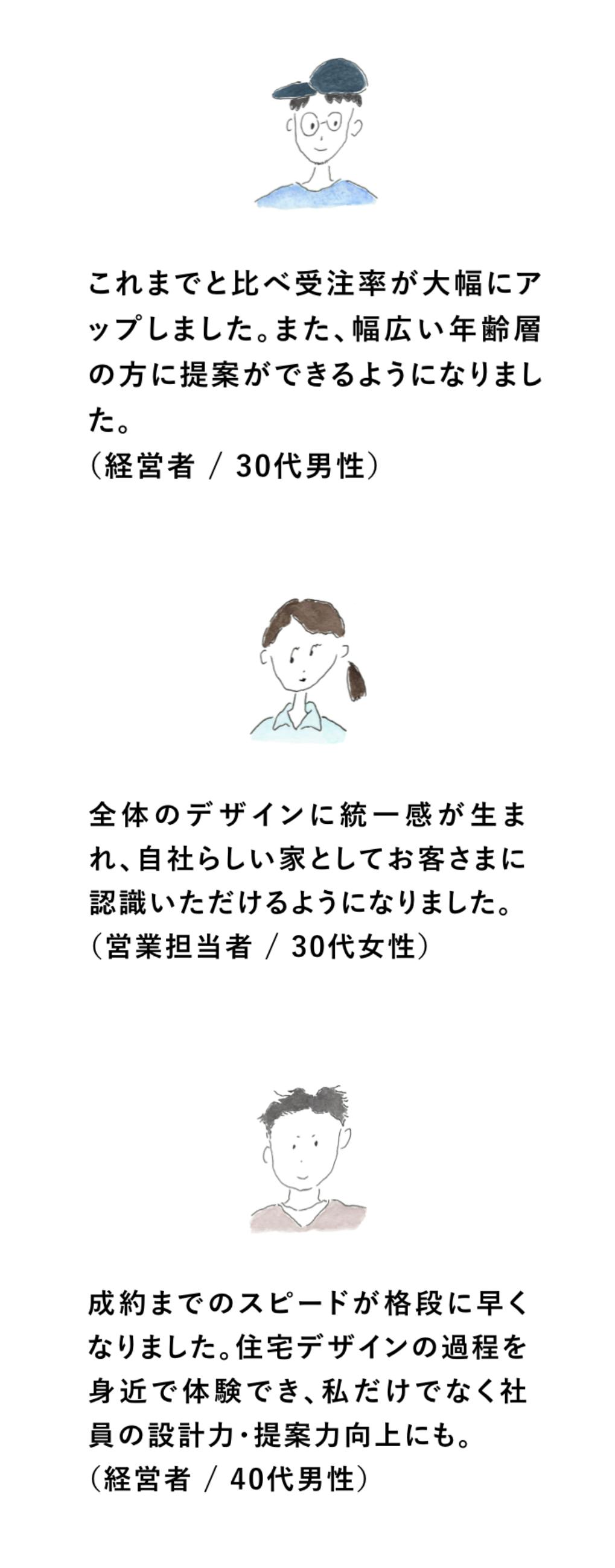 この設計法であれば、工程を進めていく中で「この部分はやっぱり無理でした」というやり直しは起きません。つくり手側の事情や都合を押し付けず、心に寄り添い、お客様ファーストでデザインできるのです。満足度高く、喜んでいただけるので、私自身も自分の仕事に誇りが持てています。