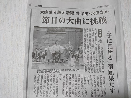 2018/05/31 20:35campfireさんのご協力を頂き、クラウドファンディングチャレンジをし、目標額達成をし、5/20(日)水田松韻会 故水田博十三回忌追善能の開催にこぎ着け、何とか無事に終わりました事を、ご報告申し上げますm(__)m campfireのリターンでチケットをお取り頂きご来場賜りました皆様へ、取り急ぎ御礼申し上げます!そして、ご遠方ゆえ・会場には行けないけどご支援賜りました皆々様へ、心より感謝・御礼申し上げますm(__)m 当日は500席満席を目指しておりましたが、なかなか難しいものですね(泣)400名以上のお客様にご来臨頂いただけでも大感激、本当に感無量でした! 公演より既に10日以上過ぎましたが、準備から宣伝から資金集めから奔走しましたので、ただいま燃え尽き症候群になり掛けております(ToT) 皆様への御礼など、急がねば・なんですがなかなか色々な事が出来ず、時間だけが過ぎております(泣)・・・本当にすみません、お許しくださいね。 徐々に復活していきますのでしばしお待ち下さいませ(^^; 追善会は、campfireさんでご縁を頂き、ご支援頂いた事で実現出来たと、夢物語りではなく、現実に実現出来ました!多くの皆様のお力添えの賜物、私1人の力では何も出来ませんが、皆様のお蔭で無事に終演出来ましたm(__)m 何にも換えれない貴重な時間を頂きまして本当に有難うございましたm(__)m皆様との良縁を大事にし、これからも頑張って参りますp(^^)q 当日は脳梗塞発症し、同じ境遇で悩まれてる方も沢山ご来場下さりました。とてもツラくしんどい病気ですが、急がず・でも前向きに頑張って参りましょうp(^^)q 能を観たことのない方に、日本が誇る『能楽』を肩肘張らずに鑑賞頂けるように、普及活動を続けて参ります! そして、『芸』で皆様を魅了出来るような能楽師になれるように、更に精進して参りますので、今後ともご支援・ご声援賜ります様に、どうぞよろしくお願い申し上げますm(__)m 有難うございましたm(__)m もっと見る