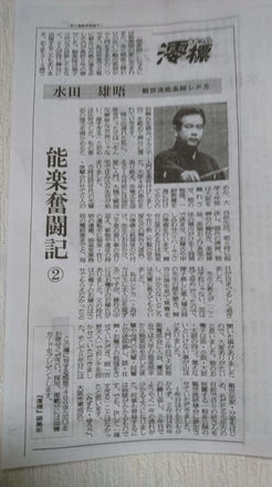 昨年大阪日日新聞さんの『澪標-みおつくし』のコラムで『能楽奮闘記』と冠して5回の連載をさせて頂きました。①~⑤の記事を順次載せて参りますがいかんせん『アナログ』な私。記事をアップしましたがズームして読めない方もいらっしゃるかも知れません(泣)画面を写真保存してから別に開き、それをズームしたら読めるかも知れません(>_<)不便をお掛けしますがどうぞご容赦下さいねm(__)m