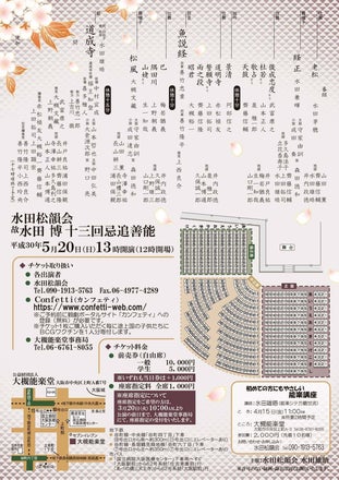 昨日までご支援頂きました37名の皆様、誠に有難うございましたm(__)mいよいよ残りが10日(>_<)ご支援頂きながらも5/20の追善能・道成寺公演当日のチケット購入支援が伸びず困っております。毎日個人で頑張って手売りを続けておりますが、500席中まだ350席売れ残っております(ToT)能の固定概念=敷居が高く難しい・が壁になっているのかなぁ。。。