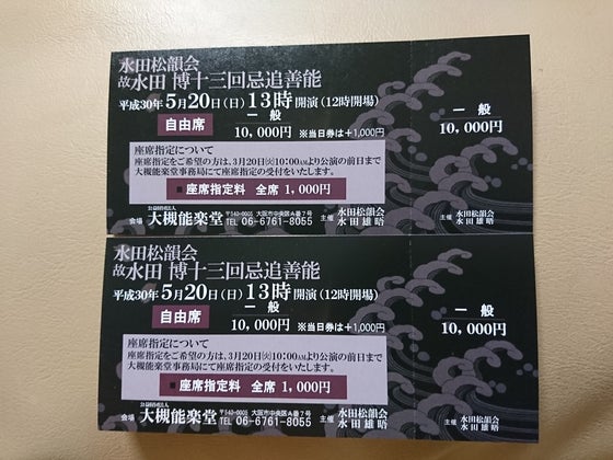 昨日までにご支援賜りました24名のパトロンの皆様、有難うございました‼️心より御礼申し上げますm(__)m 今回のリストには数点の入場鑑賞券をご準備させて頂いております(^-^) 先ずは5/20(日)13時開演於大槻能楽堂(大阪市中央区上町A-7)『水田松韻会 故水田博十三回忌追善能』 亡き父が私に遺してくれた『能楽』を舞台を通して私から息子(11歳)・娘(4歳)に伝えて行く公演になります。 娘は仕舞『老松』 (仕舞=能のクライマックス部分をお囃子=笛・小鼓・大鼓・太鼓の演奏無しで地謡=バックコーラスの謡にのせて舞う) 息子は舞囃子『経正』 (舞囃子=能のクライマックス部分をお囃子の演奏・地謡にのせて舞う。「仕舞」の経正よりも「舞囃子」の経正の方が上演時間が長い。) 私は能「道成寺」 能=シテ方・主人公を演じる。主人公は生きている男性・女性、男性・女性の幽霊、神、植物の精、鬼・天狗など。 ワキ方・シテと合い対峙する生きている男性人物を演じる。 狂言方・およそ前半と後半を繋ぐ間狂言を演じる。 シテは能面を(役により狂言方も狂言面)をつけ、シテ・ワキ・狂言方が装束を附けて、お囃子方演奏と地謡に合わせて舞う。 お囃子方と地謡(シテ方)と後見(=装束を附けたり舞台上で謡が止まったり不具合が起こった時に対処する。シテ方の役)は裃や紋付袴姿で出演する。 能でも能面・装束をつけず紋付き袴で演じる「袴能」があります。 仕舞・舞囃子は紋付き袴又は裃で演じ、能面や装束はつけません。 曲の説明や見どころは小分けにしてアップして参ります(^^ゞ