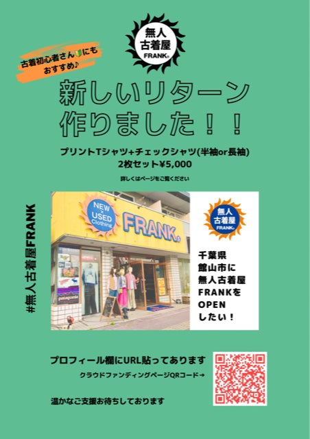この度、千葉県館山市に【無人古着屋FRANK(フランク)】をOPENしたくプロジェクトに挑戦しました。