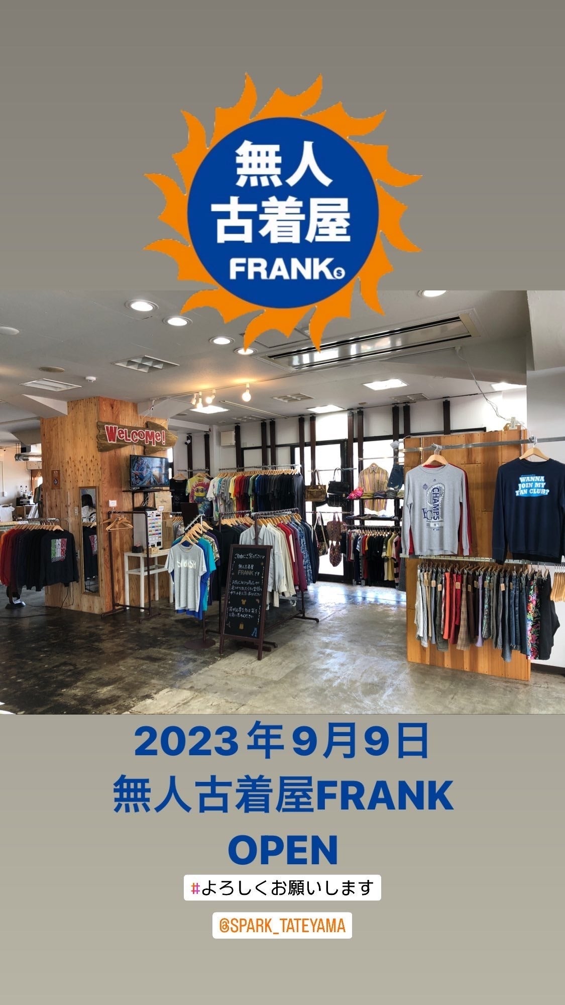 2023/09/15 13:422023年9月9日(土)に無人古着屋FRANKオープンする事ができました!オープン初日、2日目とスタッフが居て無人ではなかったですが、沢山のお客様にご来店いただき話もさせてもらい楽しかったです♪目標よりもオープン日が半月程遅れてしまったので、夏物が遅くなってしまいましたがこれから秋冬物をどんどん並べていこうと思います。お近くに来る際はぜひご来店くださいませ(*^^*)FRANK木更津も秋冬物を投入してますのでこちらもぜひ! もっと見る