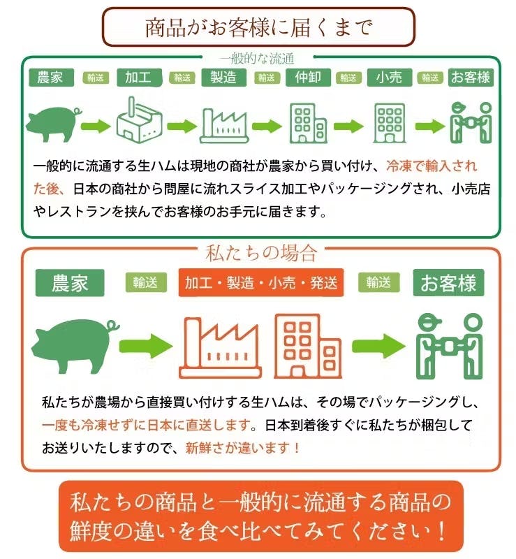 生ハムを輸入し、皆様に