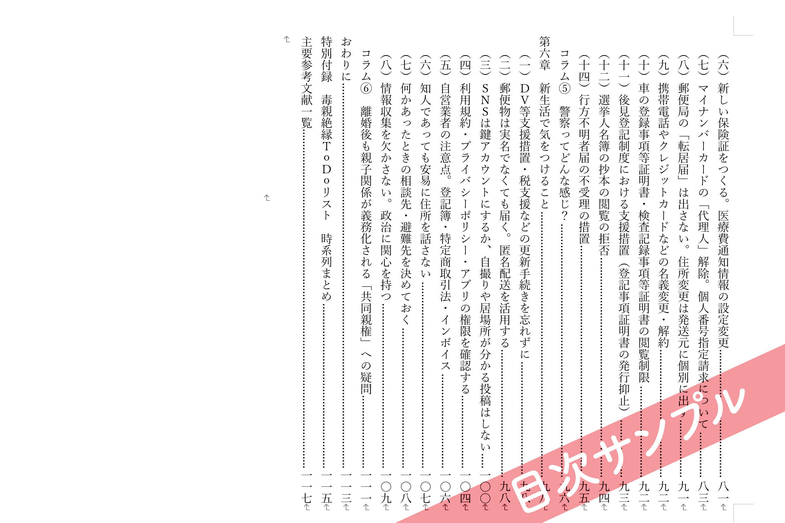 第四章・第六章 準備が煩雑だし、日常生活上の制約も多いように感じられますが、加害親の追跡を食い止めるためにはやむを得ないということは分かります。共同親権などは、加害者に有益無害でも、被害者には有害無益としか感じられません。