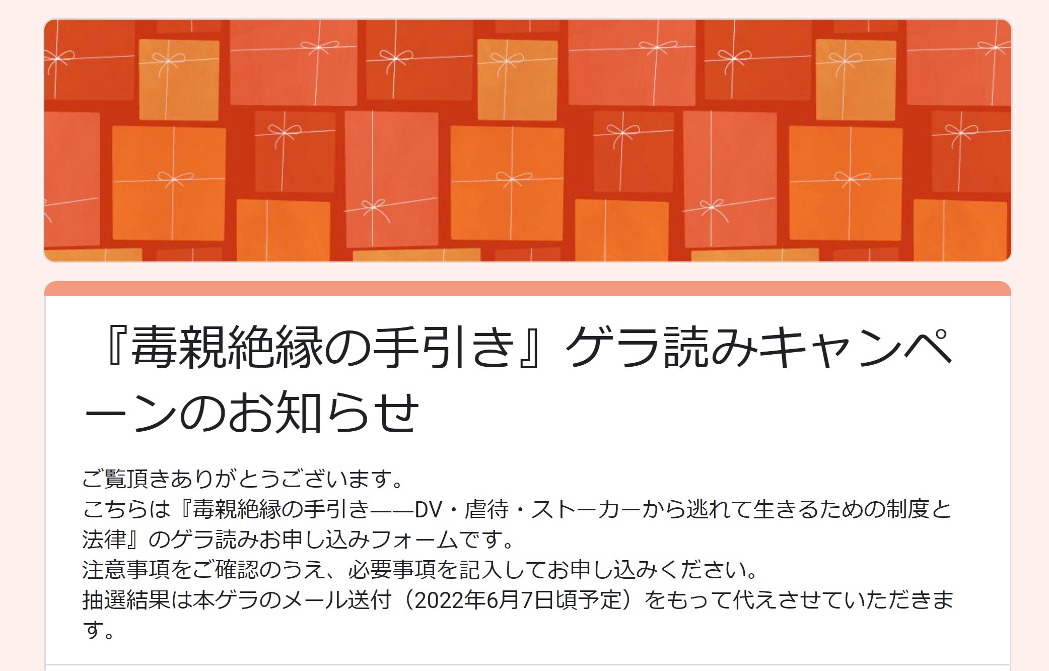 『毒親絶縁の手引き』ゲラ読みキャンペーンのお知らせ