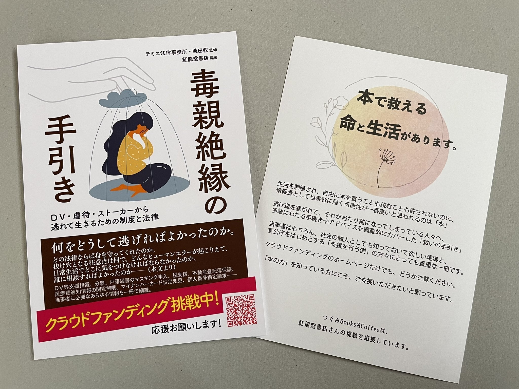 期間は5月27日(土)と28日(日)の2日間。明日と明後日です! 公園でたくさんの本に出会えるという素敵すぎるイベントで、なんと『毒親絶縁の手引き』のチラシを配布して頂けるとのことです(涙) さらに、つぐみBooks&Coffeeさんのご厚意でチラシの裏面にメッセージまで......! 皆様ぜひお立ち寄りくださいませ!