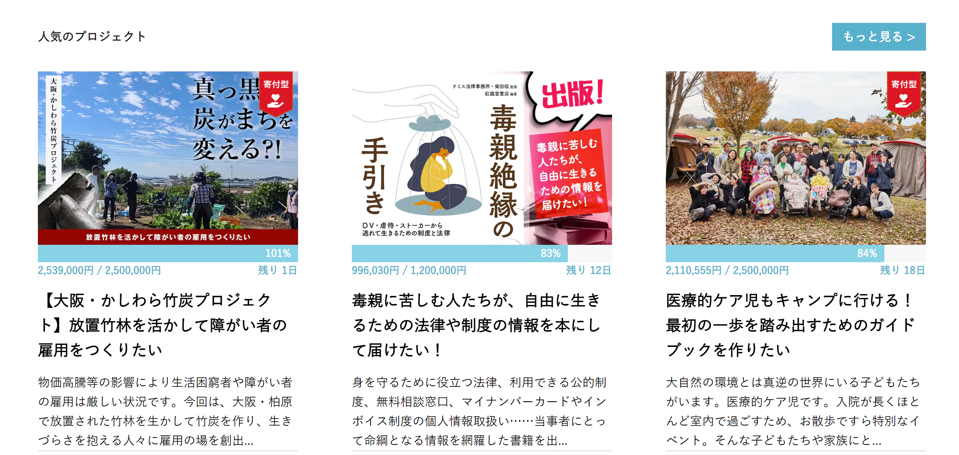 また、先ほど気付いたら、GoodMorningの「人気のプロジェクト」のトップ画面にも、なんと当プロジェクトが掲載されていました!
