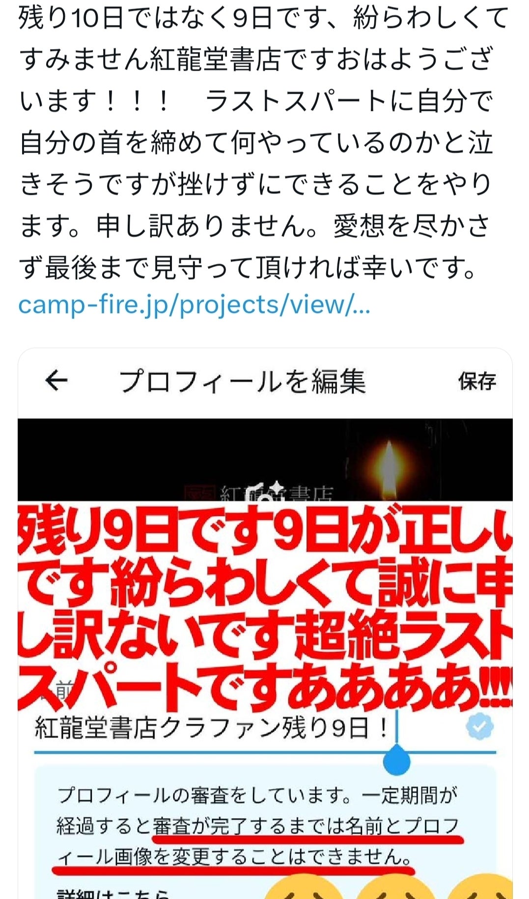 ……そんな中でとても心苦しいのですが、画像の通り、しばらくTwitterの名前が「残り10日」のまま固定されることになってしまいました。