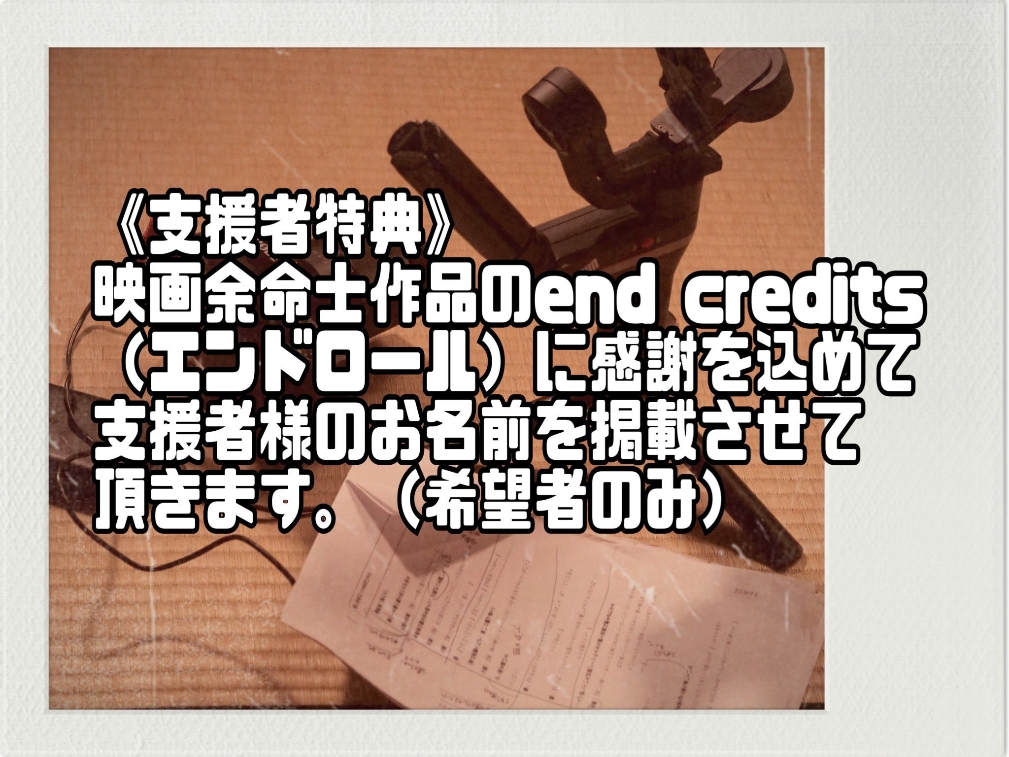 全てのリターンに支援者名をエンドロールに掲載させて頂きます。