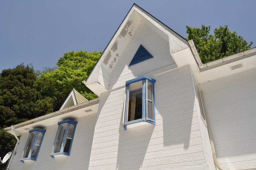 ①開業30周年を迎えるにあたって、剥げてきた外壁の改修とペンキの塗り替え。これで白と青のエーゲ海のペンションを復活させたいと思っています。