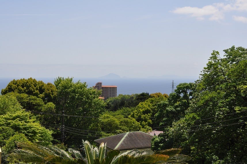 ③ここ数年の高温多湿により雑木林の成長が早く、昔はよく見えていた海がテラスから見えなくなり、「オーシャンビュー」とは言えなくなってきました。お客様から「素晴らしい景色ですね!」と言われ続けるために周辺の支障木の伐採を検討しています。