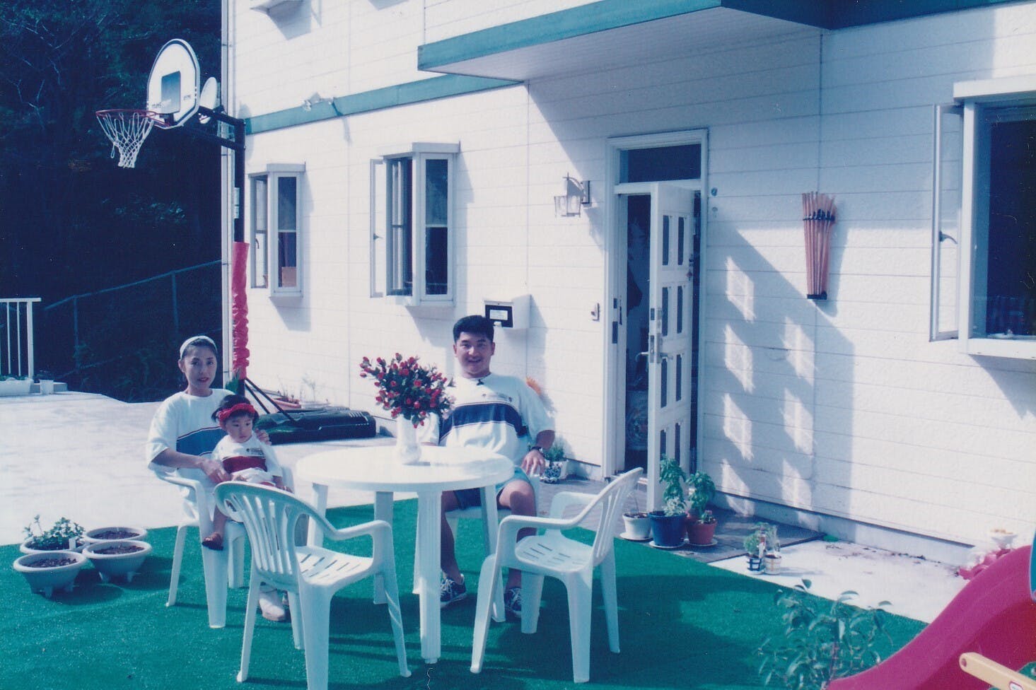 希望を胸にペンションを開業。当時は人工芝を敷いていました。