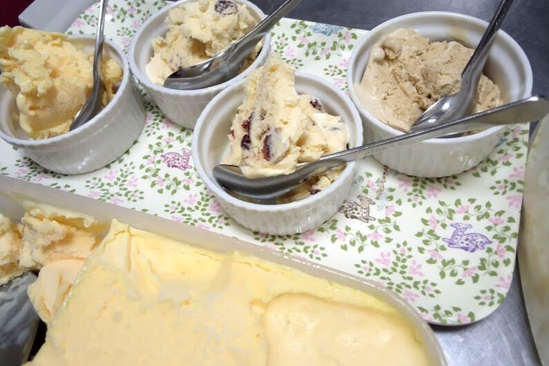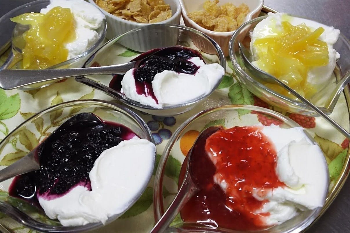 のこだわりは「手づくり」にあります。自家栽培のハーブティーと開店当初からつくり続けている“自家製ジェラートアイスクリーム”。いちごや柑橘などのフルーツを混ぜ込んだクノッソスオリジナルのジェラートです。それとギリシャヨーグルトは今では珍しくなくなりましたが、旅先のホテルで見たヨーグルトをギリシャの種菌を使って再現し、自家発酵でつくり続けています。こちらのヨーグルトがとてもおいしいと評判です。