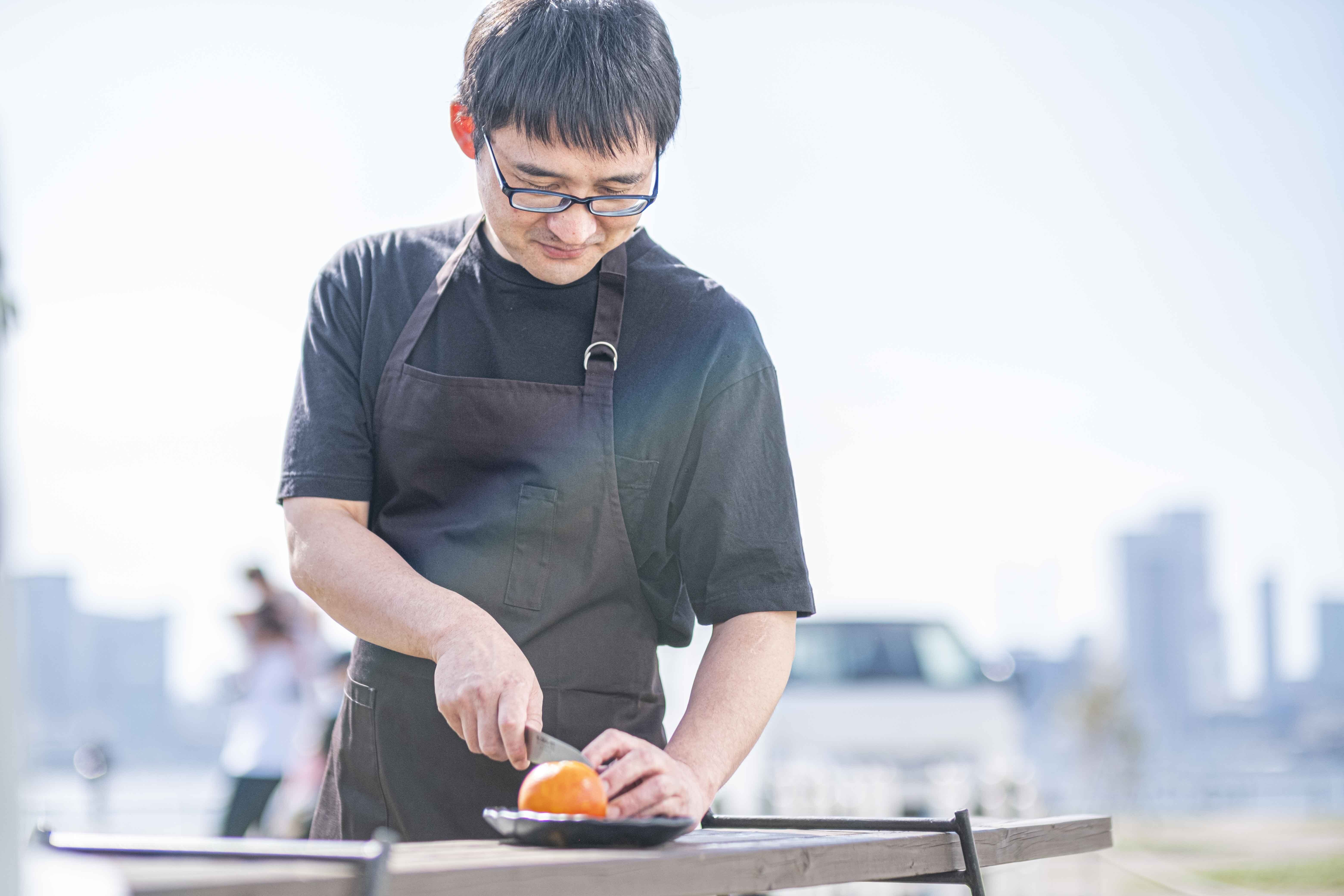 村山シェフの中には、ある思いがあります。料理人は、料理をして提供すれば、「おいしい」と言ってもらえる。でも「おいしい」の言葉は、生産者さんに直接届かない。生産者さんの思いを乗せた料理を提供したい。生産者さんが一生懸命育てた食材を無駄なく提供したい。村山シェフの思いを「梨ピューレ」に乗せて表現することに挑戦します。