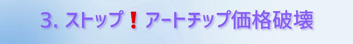 価格に関しては賛否両論あることだと承知しております。また、弊社は、縛りがないルールを大切にしており、エデュケーターが生徒さんにチップ価格を強制したり、マルチ商法的販売もご遠慮いただいており、アート作品は自由であるべきだという考えです。