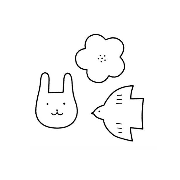 ふと壁面に花、うさぎ、トリの絵を書いた時、3つが揃ったマークが出来てこのマークをcafeで使おうと決めました。