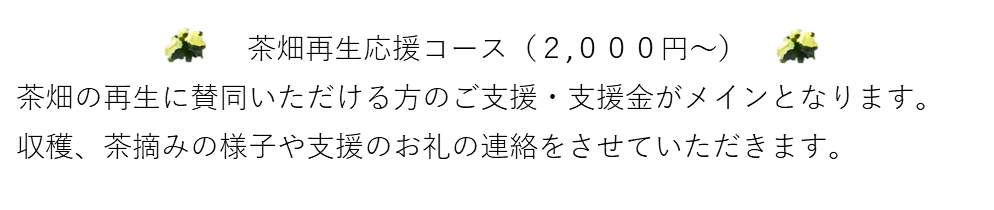 今回手をつけられなかった長期間放置されている茶畑もまだあるため、この企画を通じて多くの方にお茶の魅力を知ってもらうとともに、この地域の良さ、特色を残していけるよう微力ながら色々と挑戦していきたいと思いますので多くのご支援、ご協力を宜しくお願い致します。