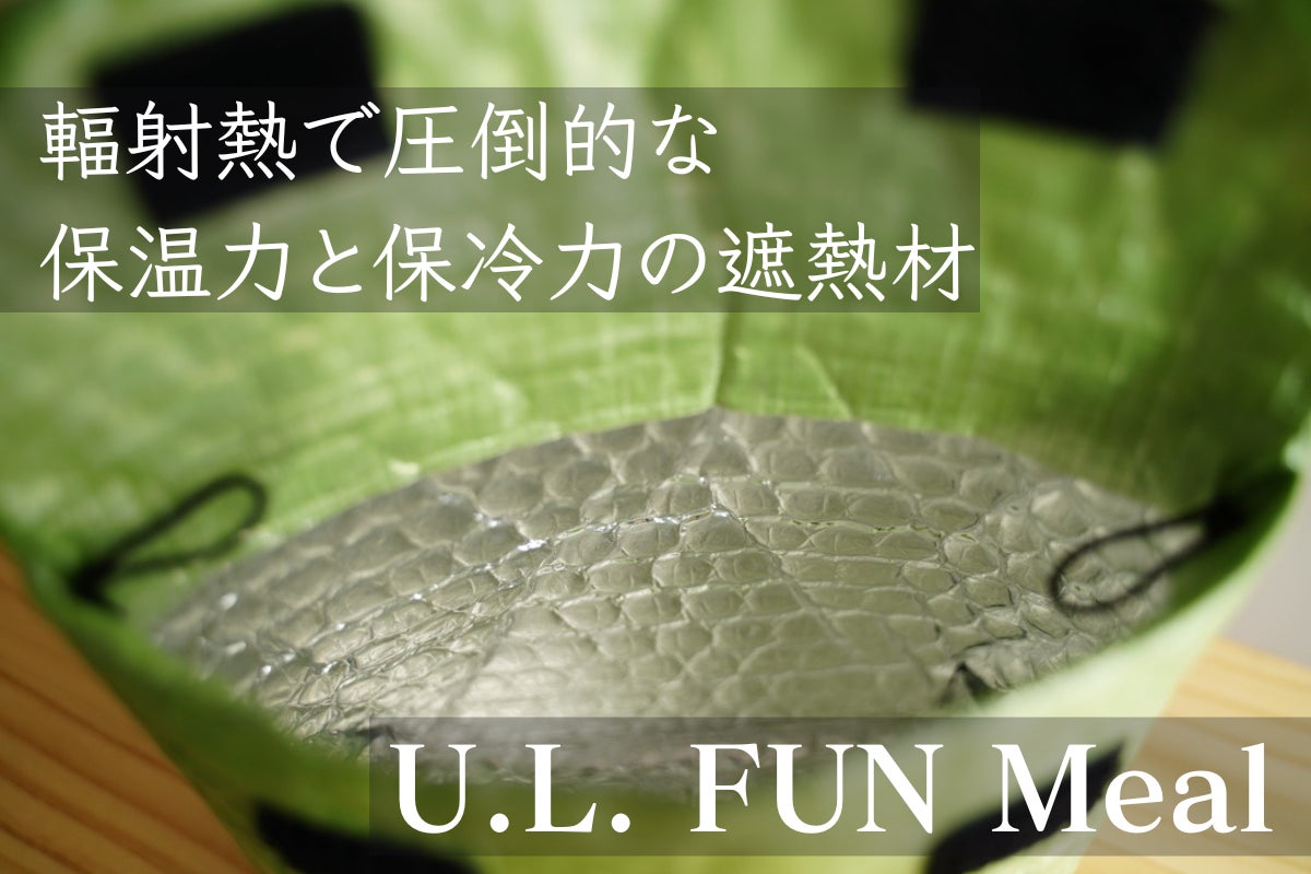 この【U.L. FUN Meal】は、内側にはアルミ遮熱材のアストロフォイルという熱反射率97%のアルミシートを使用しています。