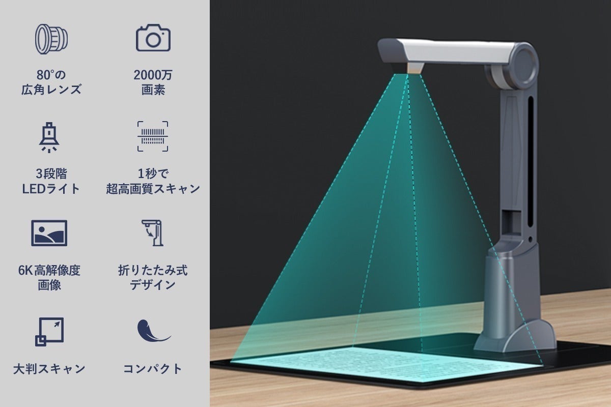 「M2000-J」 は、80°の広角レンズ + 2000万の超高画質のカメラを搭載しており、ドキュメントの細部と本来の色を鮮明に復元できます。