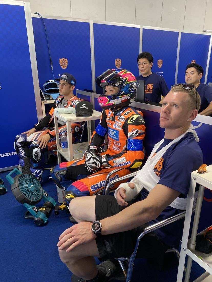 ご支援いただいた皆様には非常に残念なお知らせなのですが、8/4行われた公式予選1において走行中のジョシュ・ウォータース選手が、他車と接触転倒し右肩と手首にケガを負ってしまいました。これにより走行不能と判断し、レースを離脱することになりました。