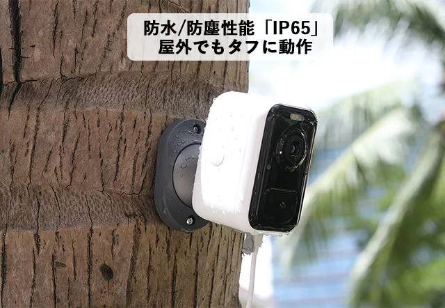 防犯カメラS3は屋外での使用も想定して設計された防水防塵等級「IP65」仕様です。場所を選ばず屋内、屋外どこでも設置可能です。