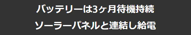 (※バッテリーの減り具合は、動体検知や暗視機能の使用頻度やリアルタイム映像確認時間により前後します。)