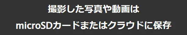 撮影した写真や動画はmicroSDカードまたはクラウドに保存できます。