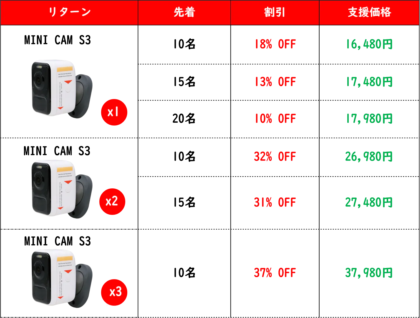 ※想定を上回る皆様から支援を頂き、量産体制を更に充実させることができた場合、一般販売価格が予定価格を下回る可能性がございます。